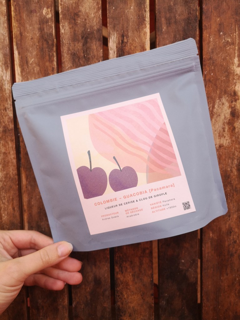 • 30 grams of coffee (natural processed pacamara from Colombia, anaerobic fermentation roasted by Kawa.Coffee in Paris)